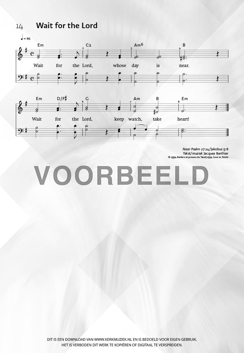 | Aanhef (eerste regel) | Wait for the Lord |