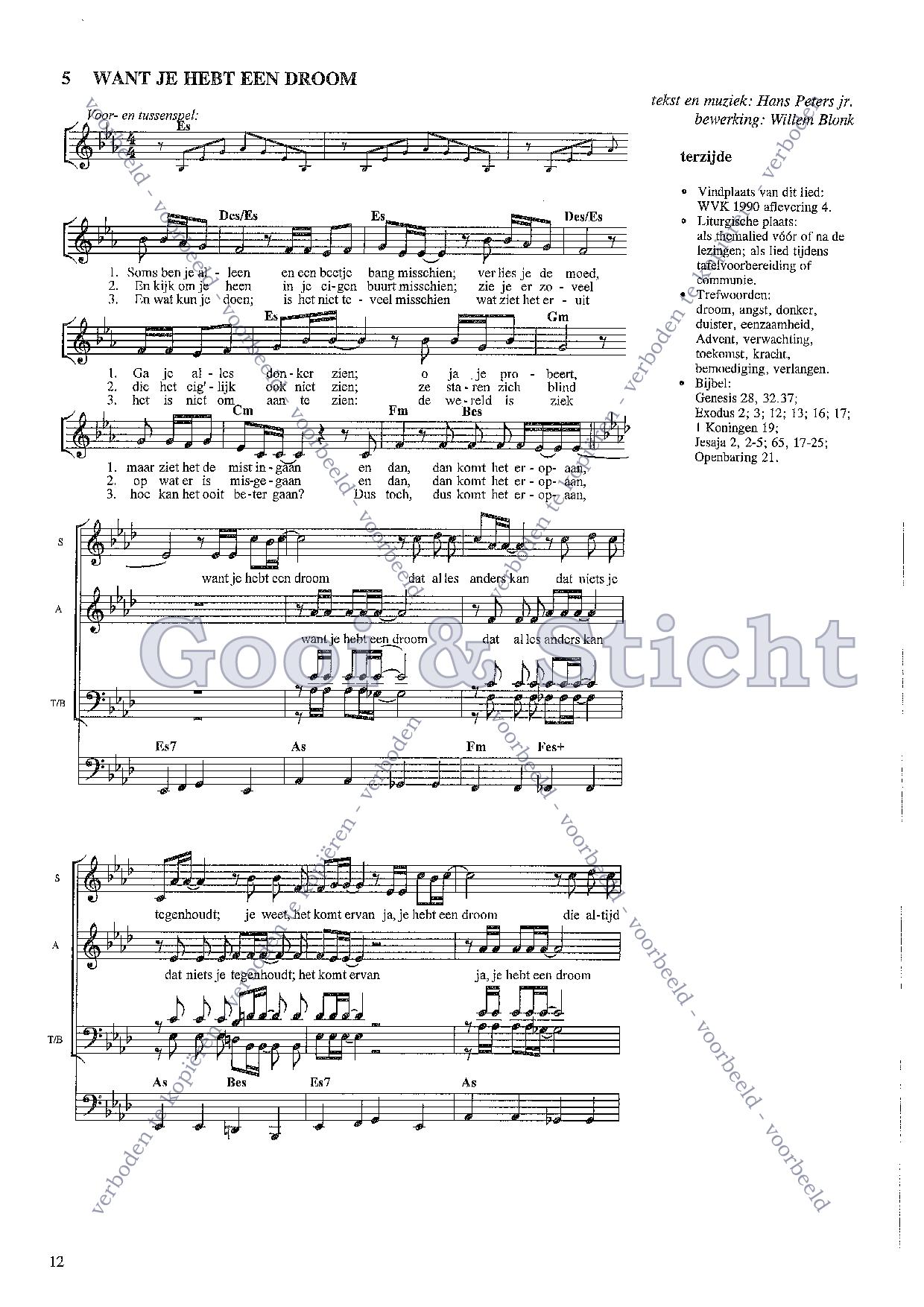 | Omschrijving | Voor vierstemmig koor, met gitaarakkoorden en baslijn. |