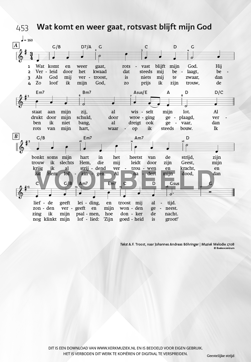 | Aanhef (eerste regel) | Wat komt en weer gaat, rotsvast blijft mijn God |