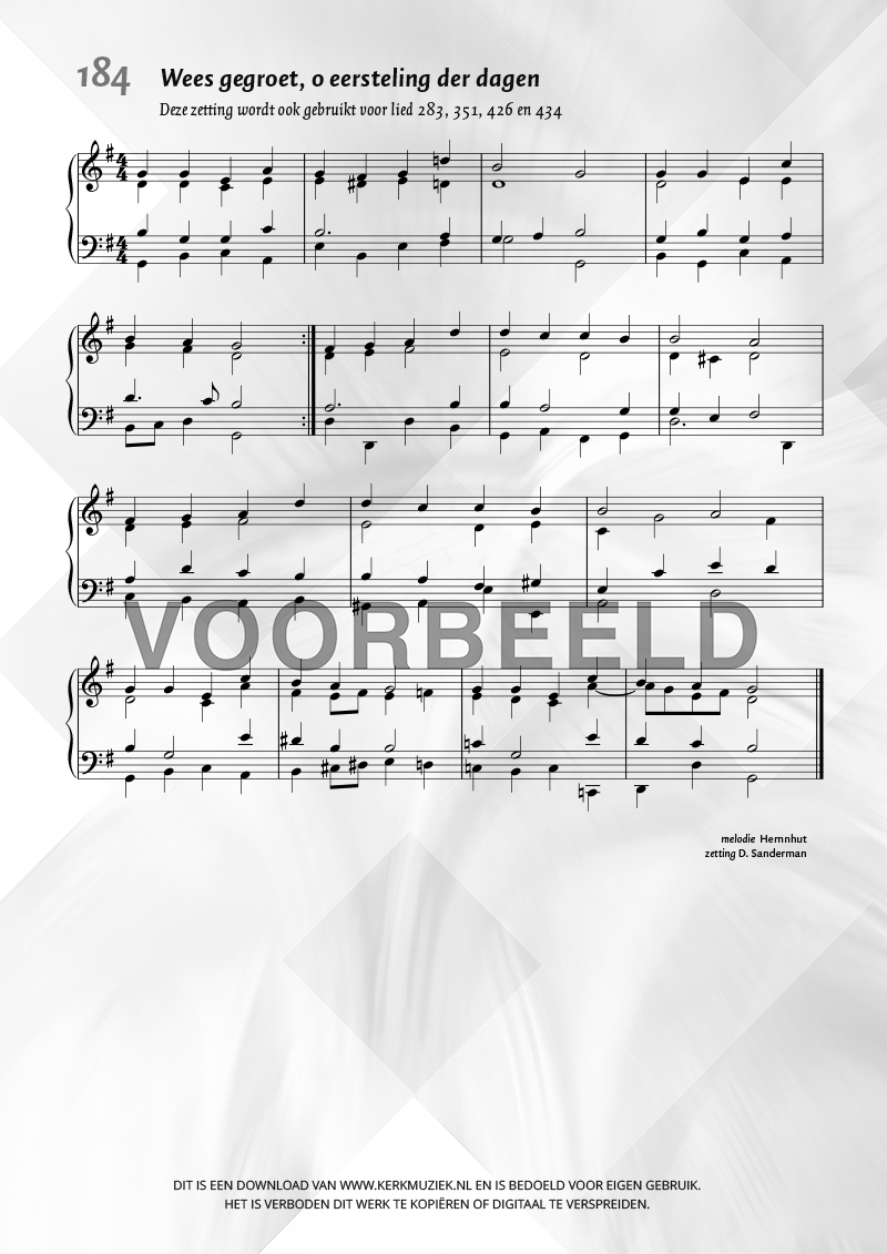 | Aanhef (eerste regel) | Wees gegroet, o eersteling der dagen |