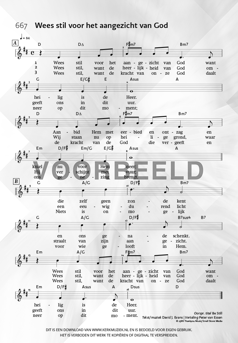 | Aanhef (eerste regel) | Wees stil voor het aangezicht van God |