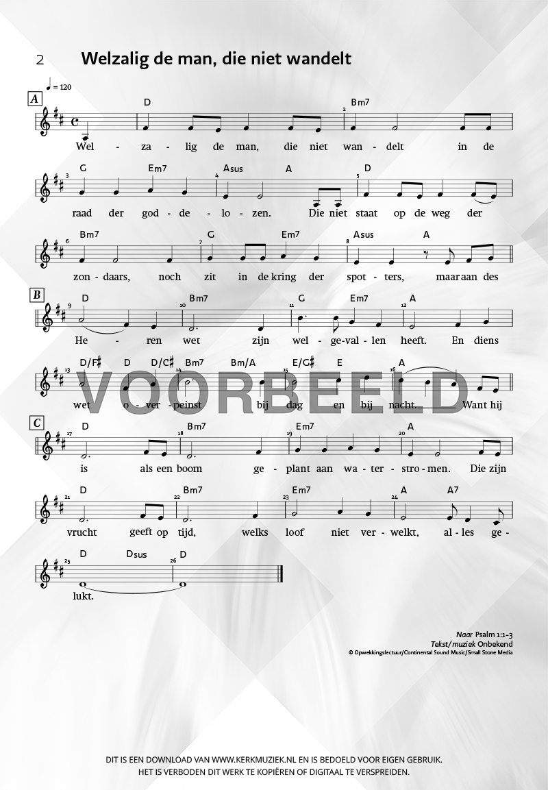 | Aanhef (eerste regel) | Welzalig de man, die niet wandelt |
