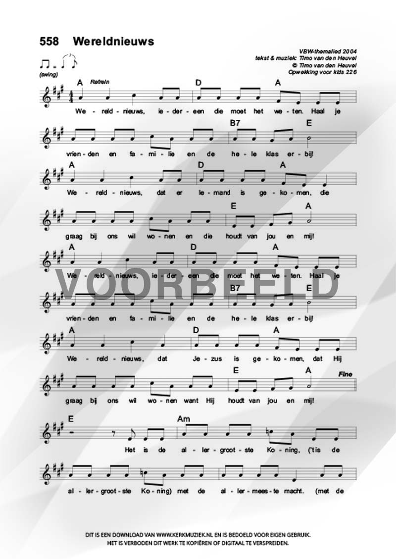 LET OP: U dient ZELF de liedbestanden te downloaden en af te drukken. Wij sturen u dus géén bladmuziek per post toe! U kunt na een geslaagde betaling direct zelf aan de slag.
