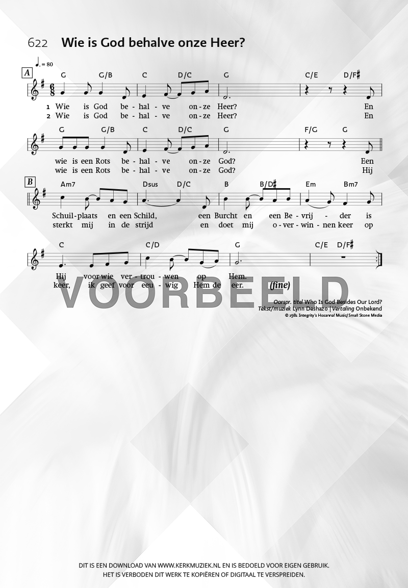 | Aanhef (eerste regel) | Wie is God behalve onze Heer? |