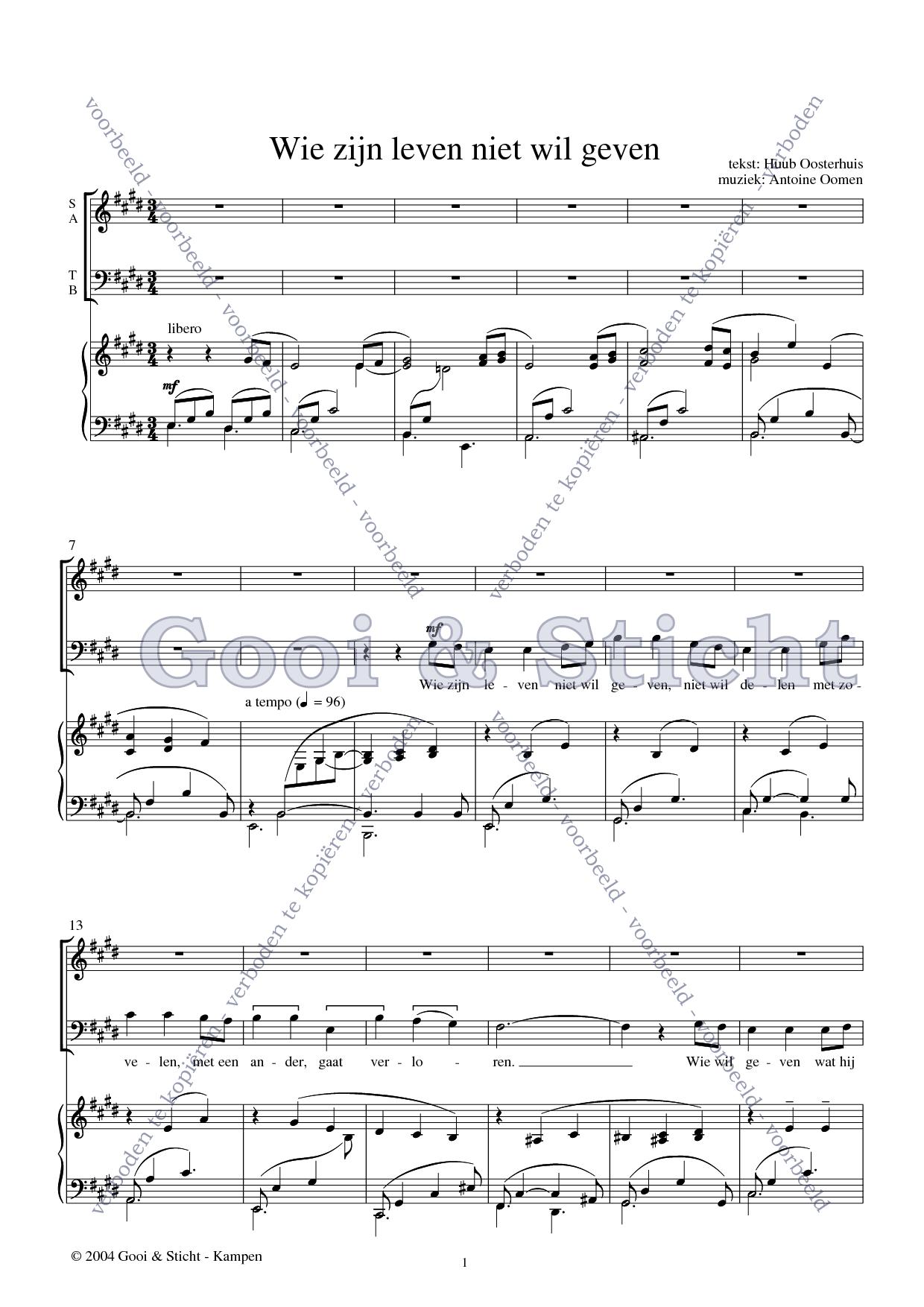 | Omschrijving | Partituur voor vierstemmig gemengd koor, volk en piano |