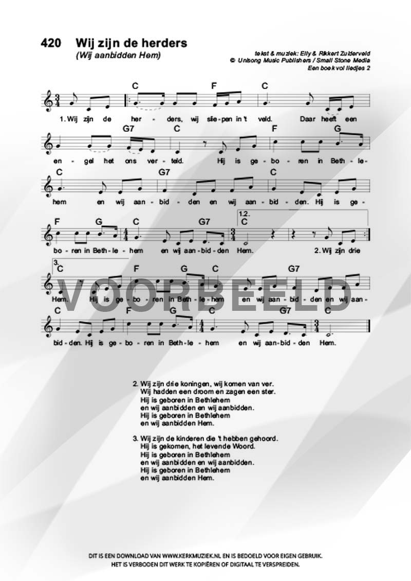 LET OP: U dient ZELF de liedbestanden te downloaden en af te drukken. Wij sturen u dus géén bladmuziek per post toe! U kunt na een geslaagde betaling direct zelf aan de slag.