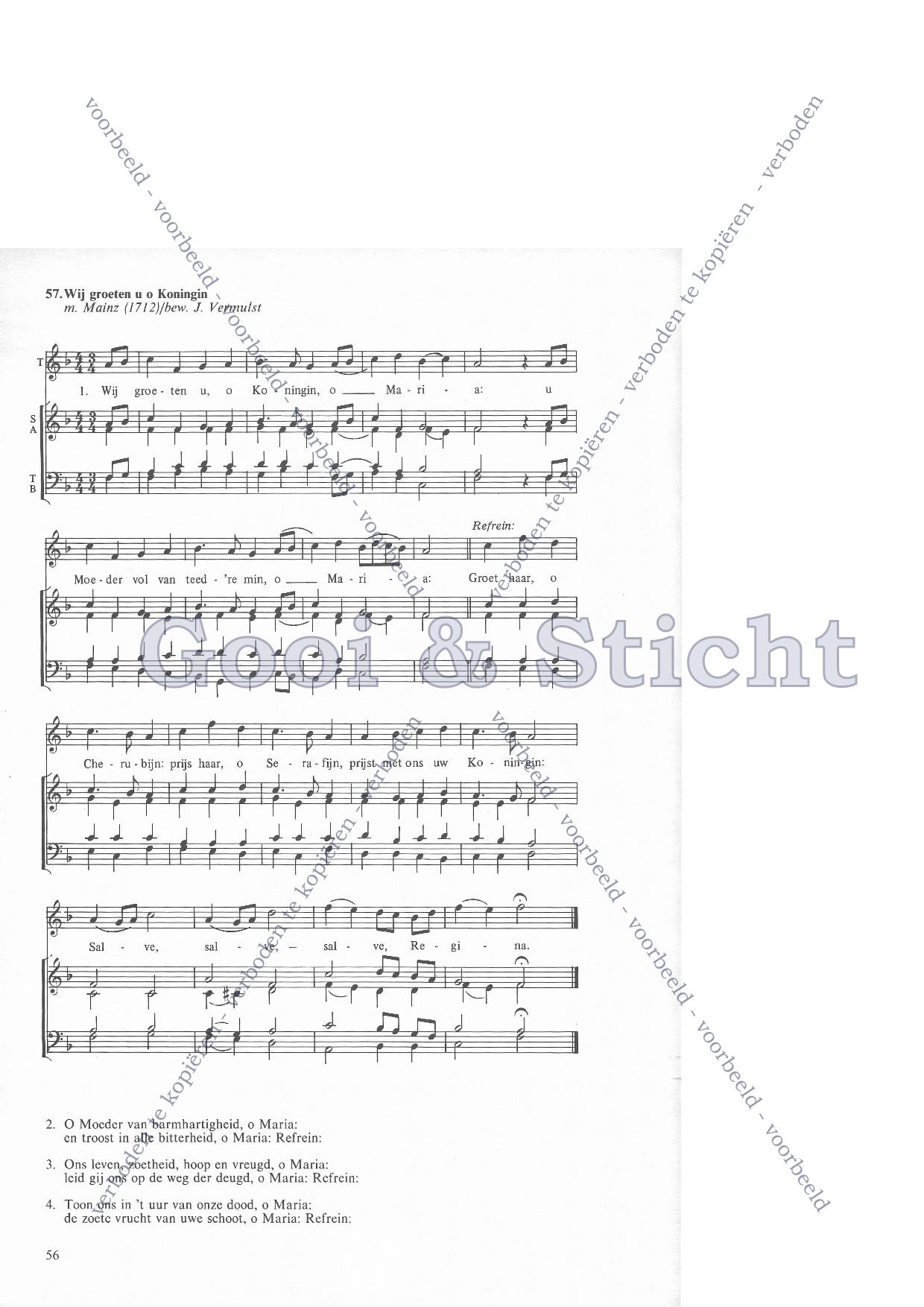 | Aanhef (eerste regel) | Wij groeten u o koningin |