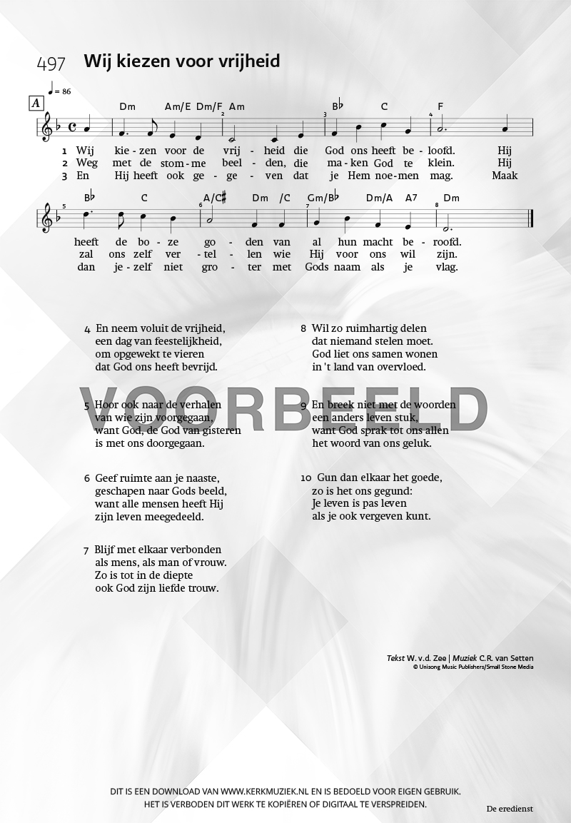 KOORZETTINGEN (boven de € 10,=) mag u maximaal 30 maal kopiëren voor uw koorleden.