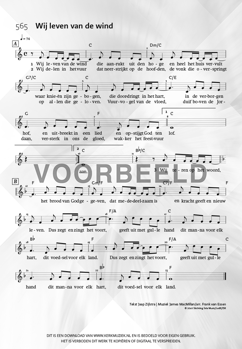 | Aanhef (eerste regel) | Wij leven van de wind |