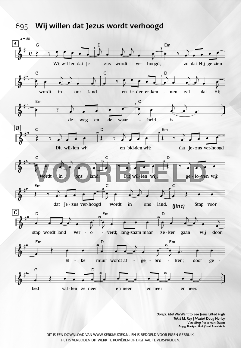 | Aanhef (eerste regel) | Wij willen dat Jezus wordt verhoogd |