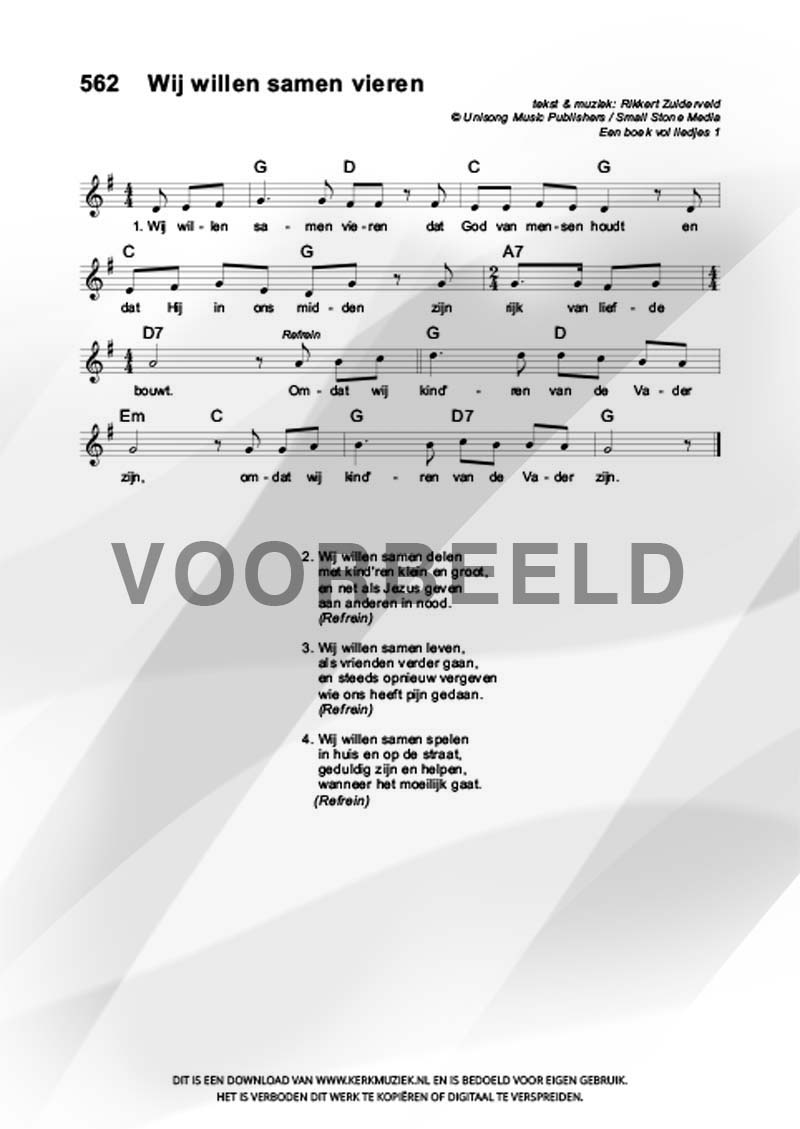 | Aanhef (eerste regel) | Wij willen samen vieren |