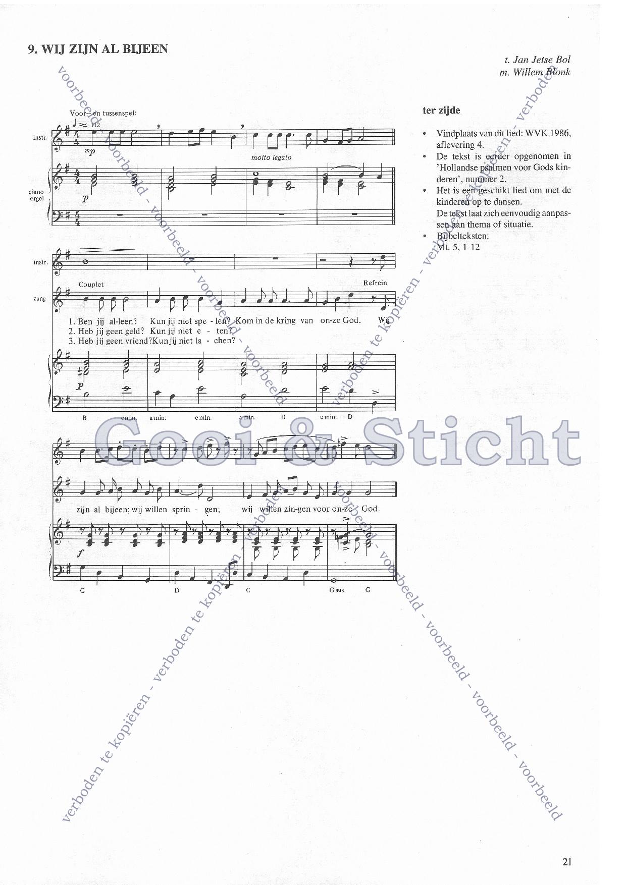 LET OP: U dient ZELF de liedbestanden te downloaden en af te drukken. Wij sturen u dus géén bladmuziek per post toe! U kunt na een geslaagde betaling direct zelf aan de slag.