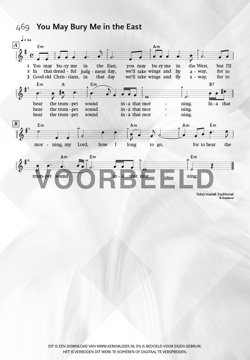 | Aanhef (eerste regel) | You May Bury Me in the East |