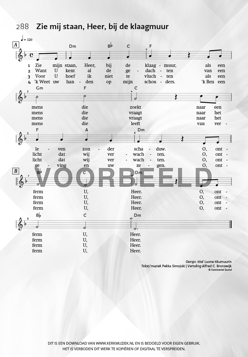| Aanhef (eerste regel) | Zie mij staan, Heer, bij de klaagmuur |