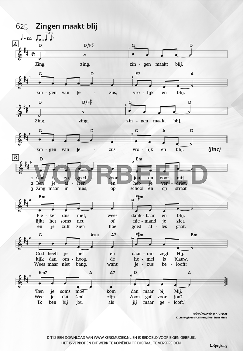 | Aanhef (eerste regel) | Zingen maakt blij |