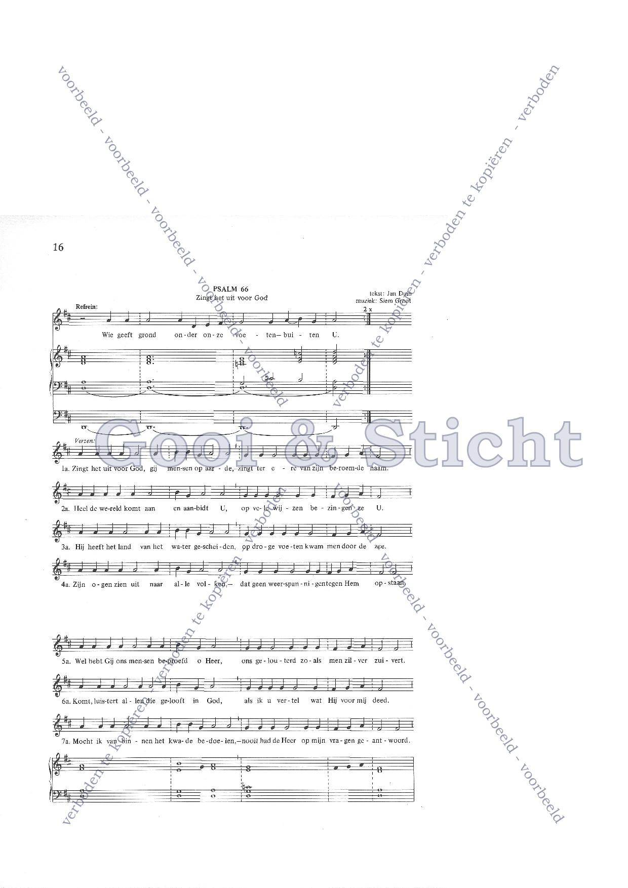 | Aanhef (eerste regel) | Zing het uit voor god |
