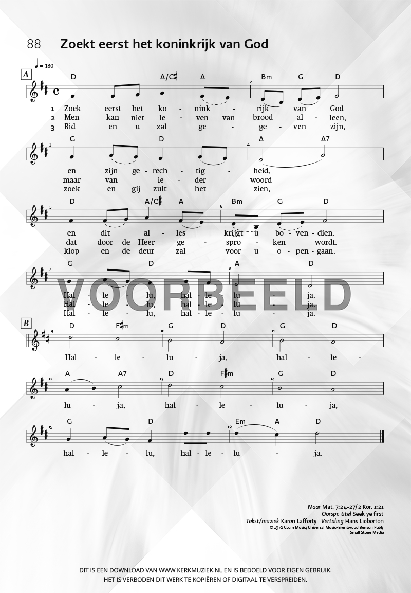 | Aanhef (eerste regel) | Zoek eerst het koninkrijk van God |