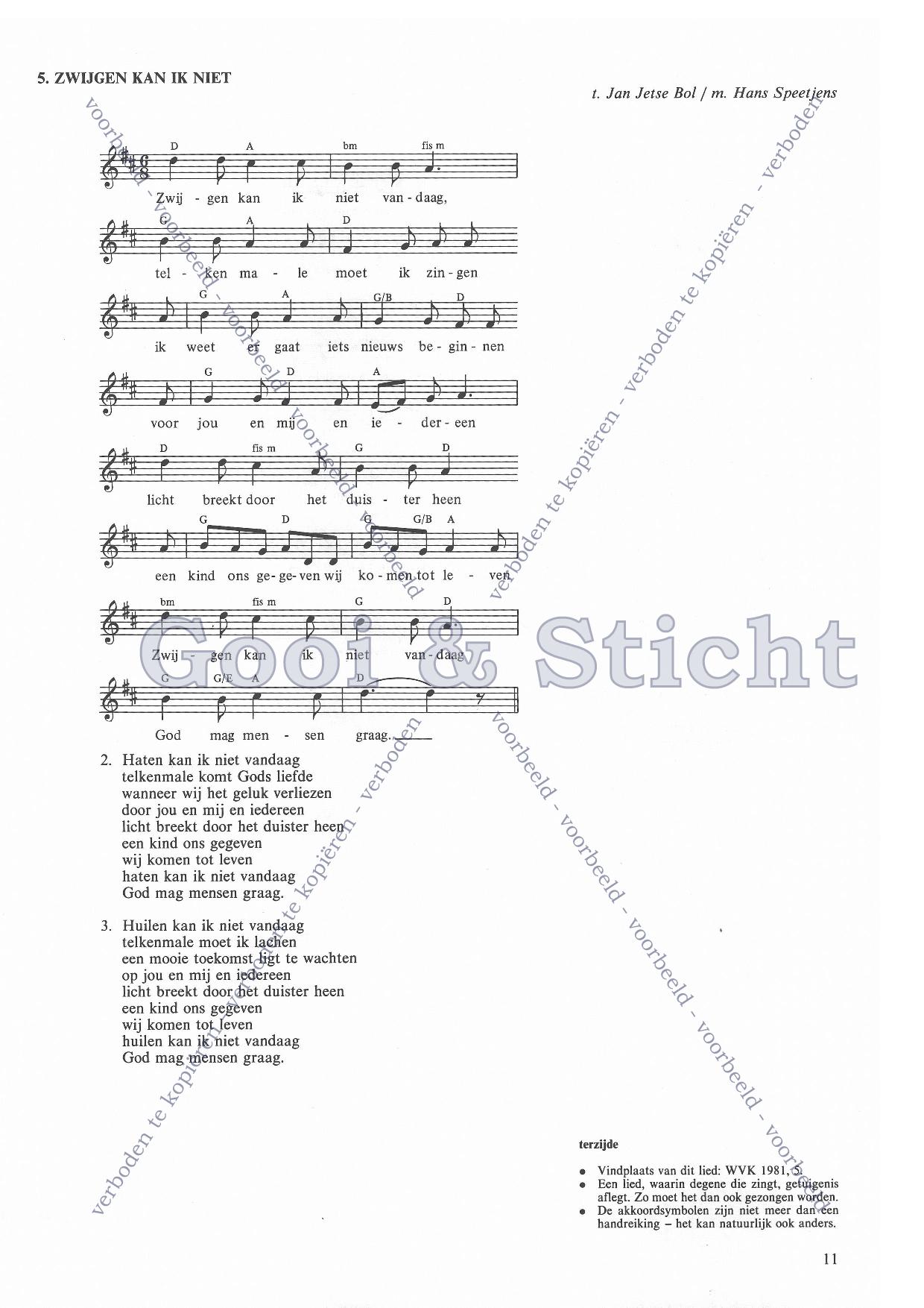 | Aanhef (eerste regel) | Zwijgen kan ik niet |